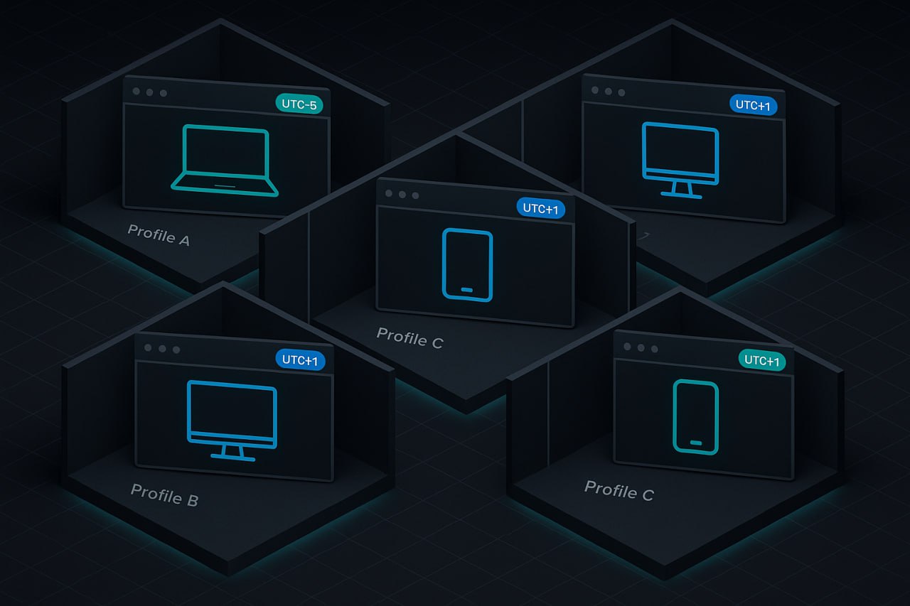 An anti-detect browser solves this problem by allowing alteration or emulation of any identifiable parameters. Dolphin Anty effectively “multiplies” your environment: for example, your actual PC with an Intel i7 processor located in Perm can masquerade as a different machine with an i5 processor supposedly located in Rome. Each profile in Dolphin is an isolated container with its own data, entirely separated from the others. In different tabs, you can simultaneously run, say, a U.S. Facebook account and a German Google account, with websites unable to tell they are open on the same device, since the fingerprints differ completely.