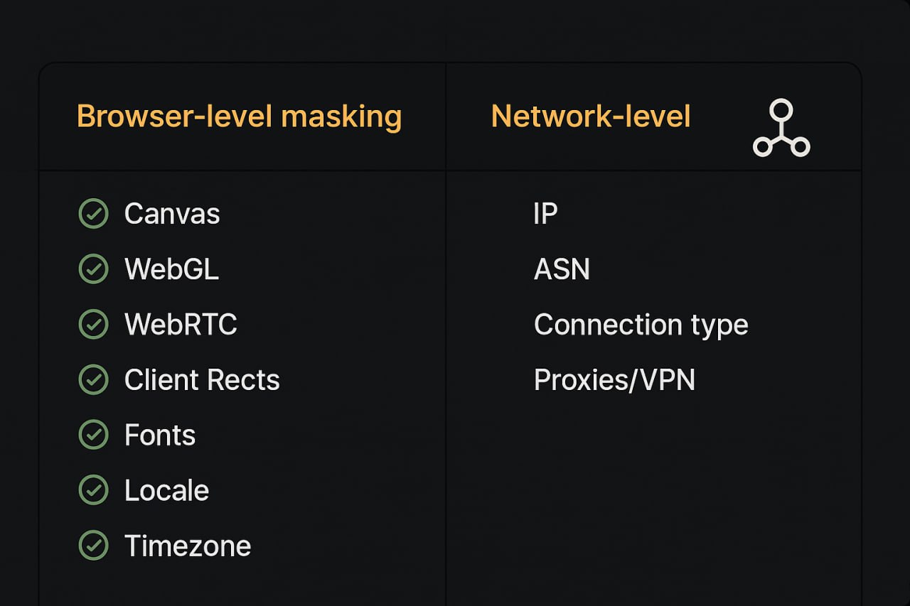 During ordinary web browsing, the browser and device disclose a wide array of information to websites: User-Agent, time zone, screen resolution, list of fonts, Canvas/WebGL parameters, IP address, and dozens of other factors. Collectively, this data set forms a user’s digital fingerprint, which makes it possible to distinguish them from others. Each individual parameter may not be unique (for example, many people use Windows 10 with a certain version of Chrome), but the combination of dozens of characteristics often proves unique to a given device. Anti-fraud algorithms of major online services (social networks, ad platforms, marketplaces, etc.) actively harvest such fingerprints to detect suspicious behavior-for instance, one person operating multiple accounts.