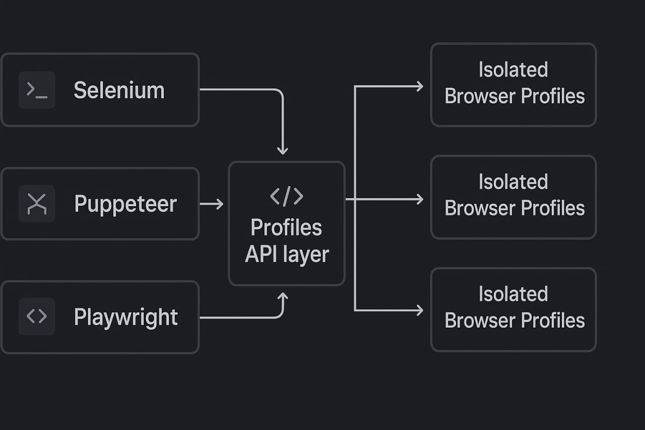 Automation. Built-in tools in Dolphin Anty enable automation of routine operations without programming skills. With the script builder (“Scenarios”), you can record and replay action sequences such as logging into an account, filling in a profile, or scraping data from a page. Templates can be created manually or drawn from the community. In addition, Dolphin Anty supports profile control via external code, with integration for Selenium, Puppeteer, Playwright, and other popular web automation frameworks. This opens opportunities for developers to programmatically launch profiles, fetch site data (e.g., from Cloudflare-protected domains), and perform bulk operations (account registrations, post publishing, etc.) with minimal human input.