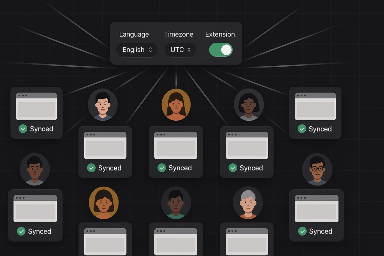 - Synchronization and bulk operations. A unique Dolphin Anty function is the action synchronizer, which lets you manage groups of profiles in parallel. For example, you can add the same extension to all selected profiles or update a setting (language, time zone, etc.) across multiple browsers simultaneously. Bulk import and export of profiles is supported: you can load hundreds of accounts from a CSV/Excel template or export existing profiles (including cookies) for backup or transfer. Bulk cookie export per selected profiles is also available-useful for analytics or session migration.